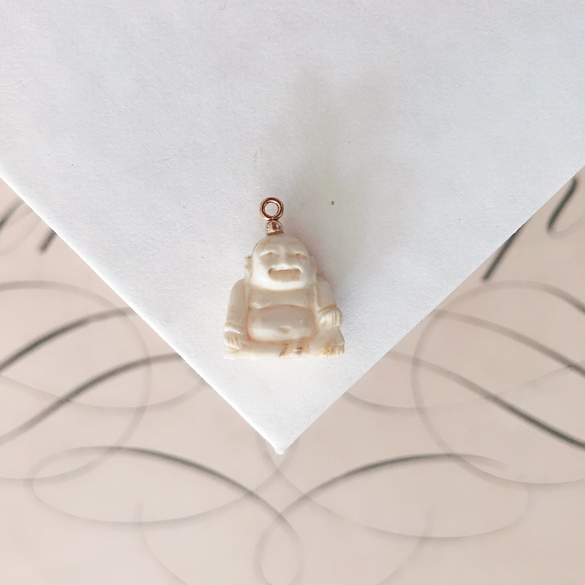 Bring good luck, contentment, and abundance with this carved bone lucky buddha charm.